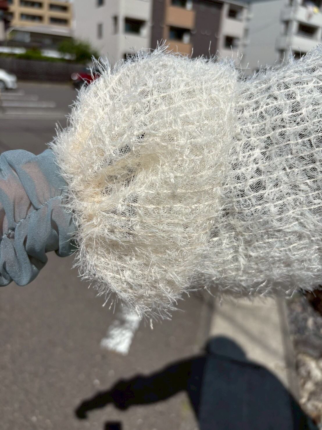 ふんわりしたパフスリーブの袖口はゴムシャーリングで緩くフィット、クシュクシュっとギャザーアップも可能です。