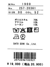素材:ポリエステル70% アクリル15% レーヨン15%