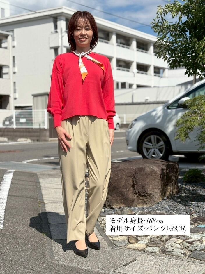 ウエストからあしらったタックが、シルエットに立体感をプラスしてくれるので、やわらかさを感じる女性らしい着こなしが完成します。