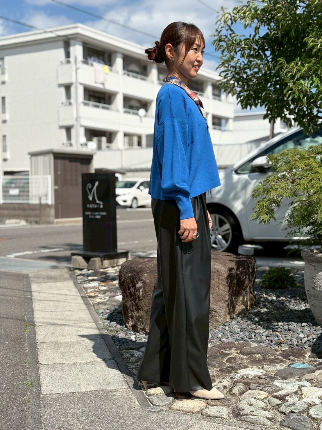 秋冬コーデに映える、フェイクレザーパンツ。