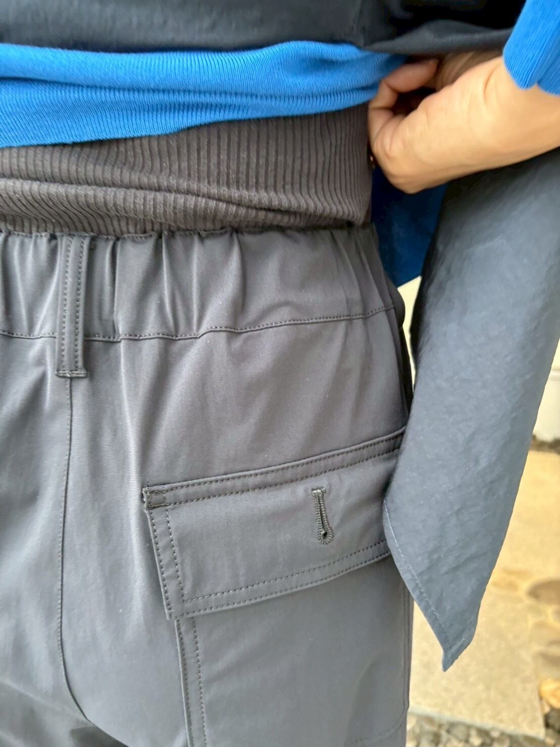 裾周りには1周ドロストが通してありますので、脇のストッパーで絞る事でコクーンシルエットになります。