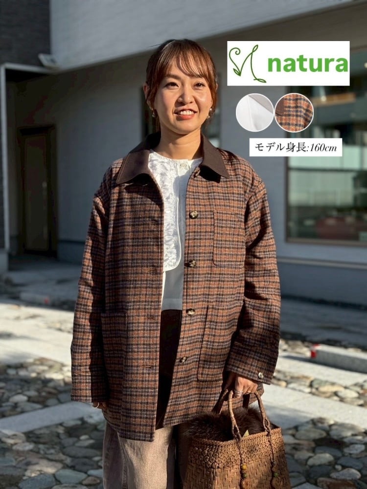 素材:ブラウンチェック:表地:本体:綿100%