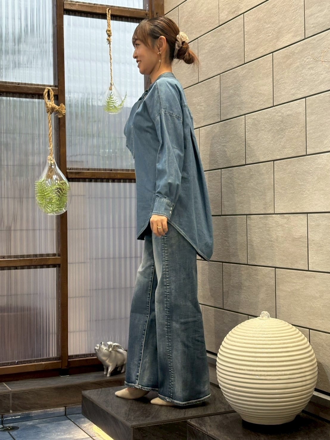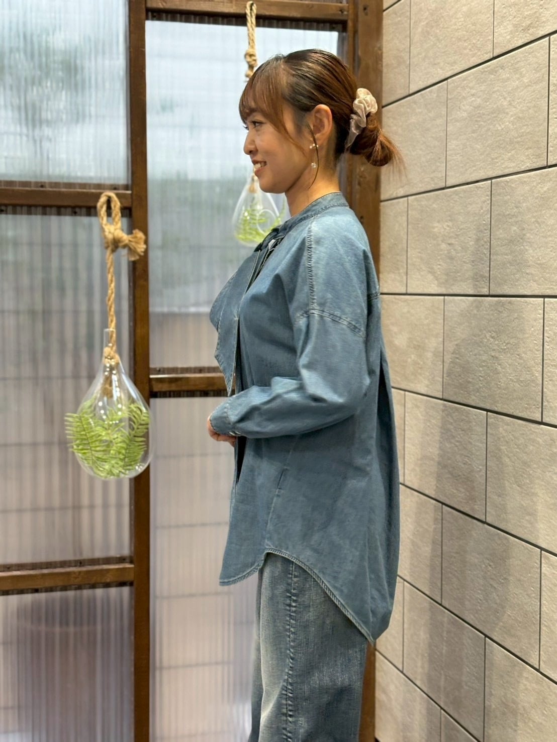 カジュアルな定番デニムシャツもボウタイリボンで大人かわいいを演出してくれます♪