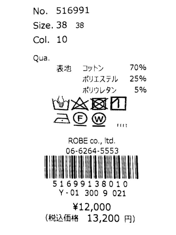 素材:表地:コットン70% ポリエステル25% ポリウレタン5%
