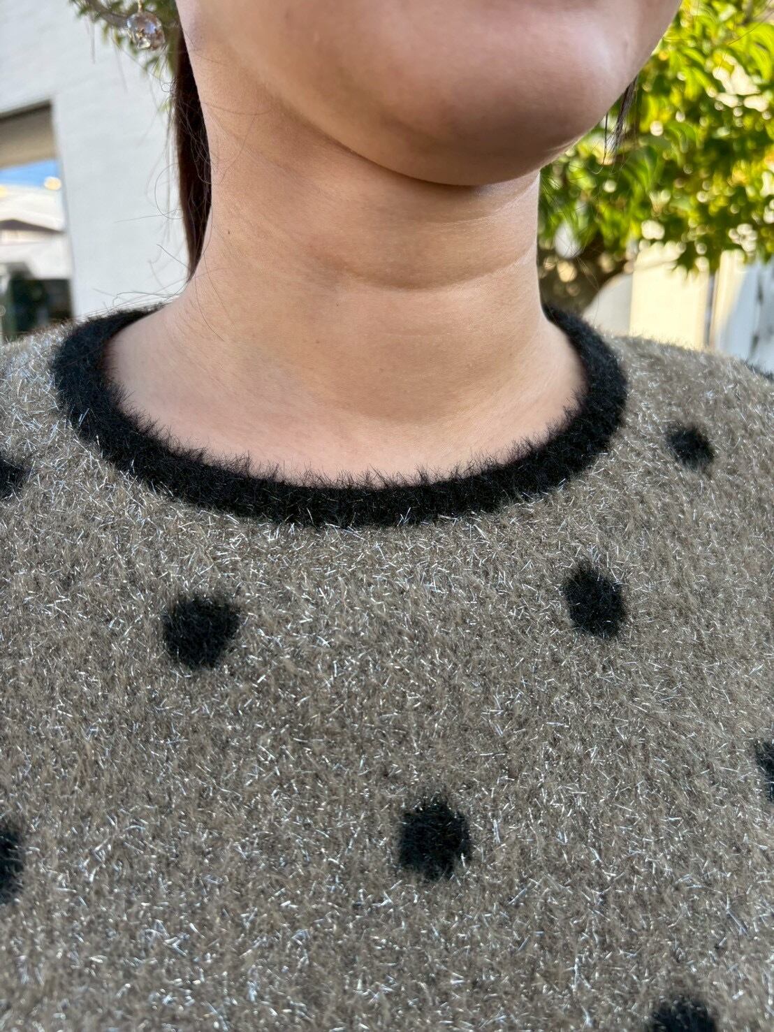 柔らかく肌触りの良いラメを混紡したシャギーニット。