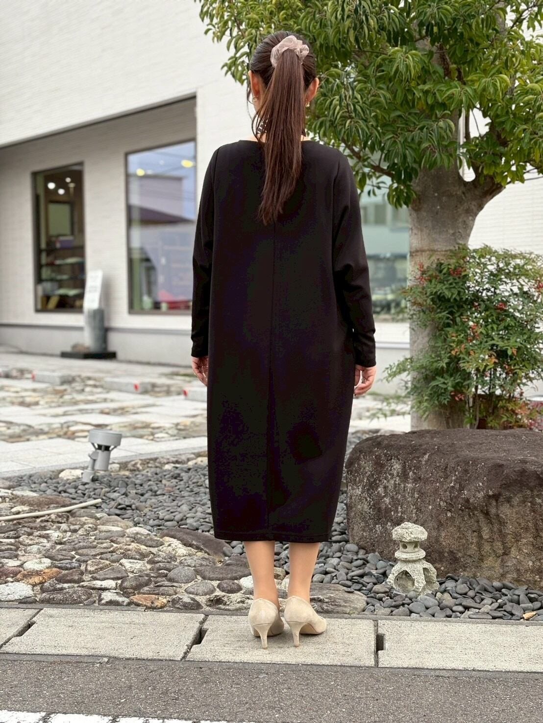 程よいドルマンスリーブとサイズ感でボディーラインを気にせず着ることができ、身頃の素材はジャージ素材で伸縮性にも優れてシワにもならず、とっても着心地が良いワンピースです。