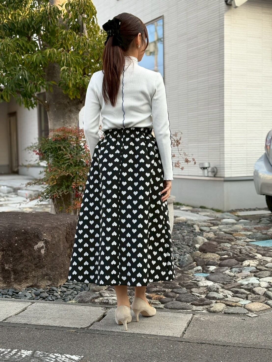 上品な印象のハート柄ジャガードスカート。