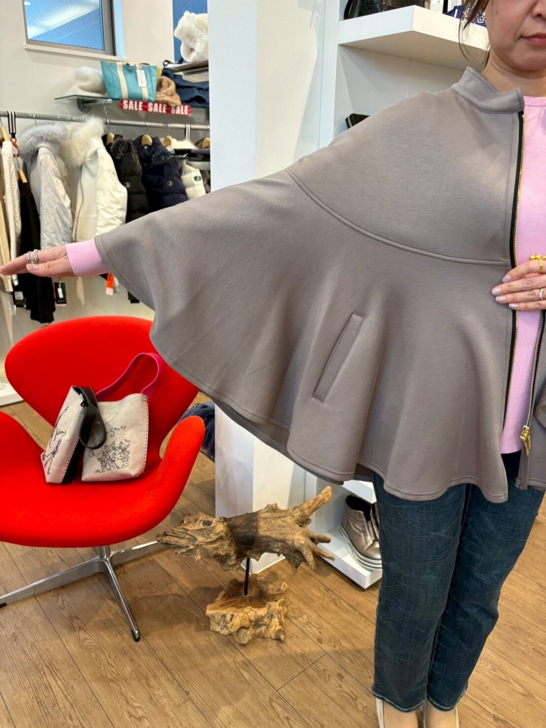 ポンチョのデザインなので、着るだけでおしゃれに決まります。