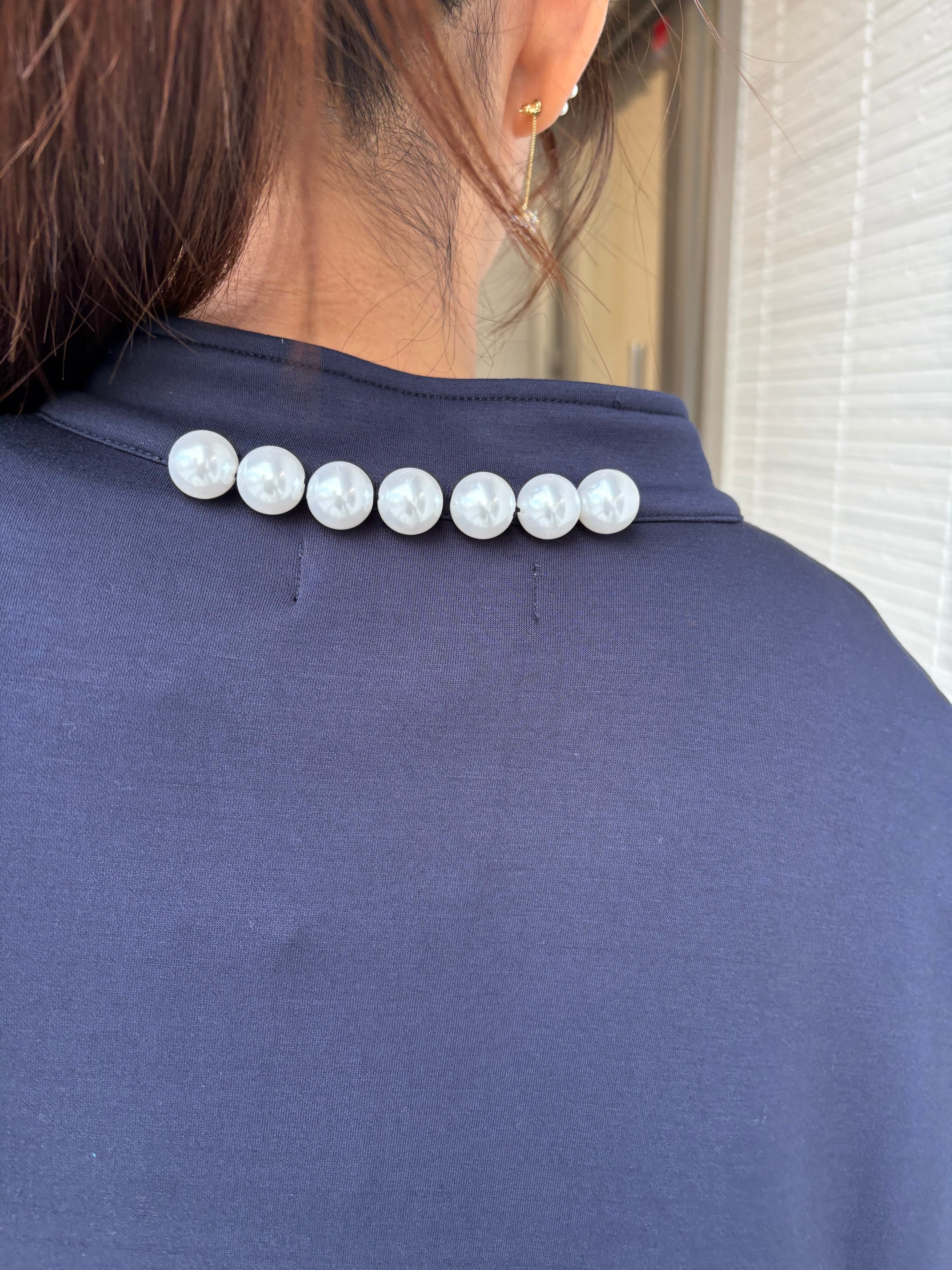 後ろ襟ぐりにパールがあしらわれており、程よい華やかさをプラス。