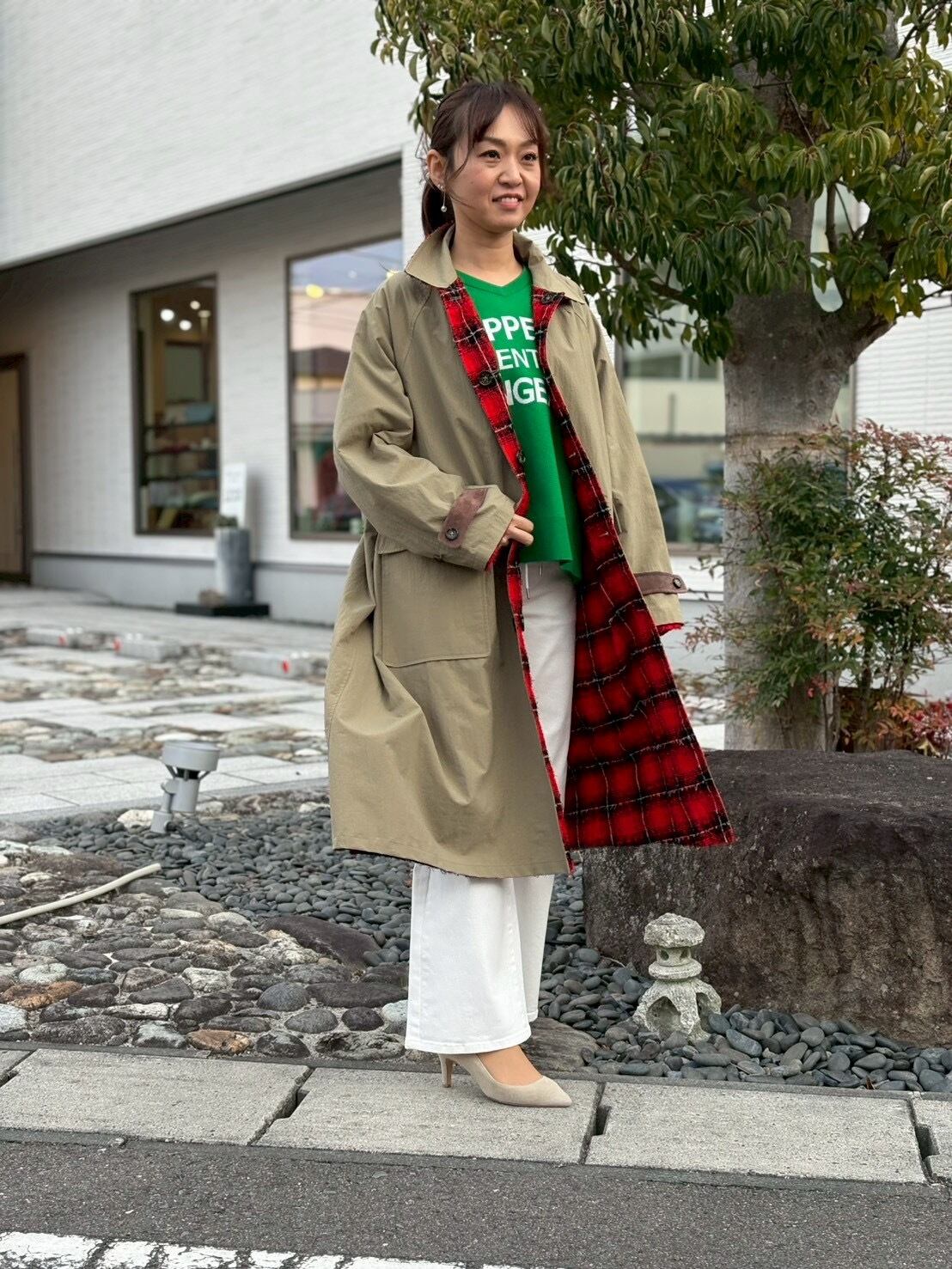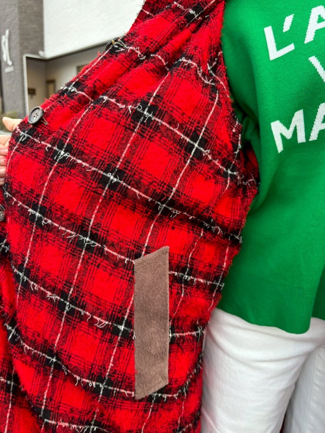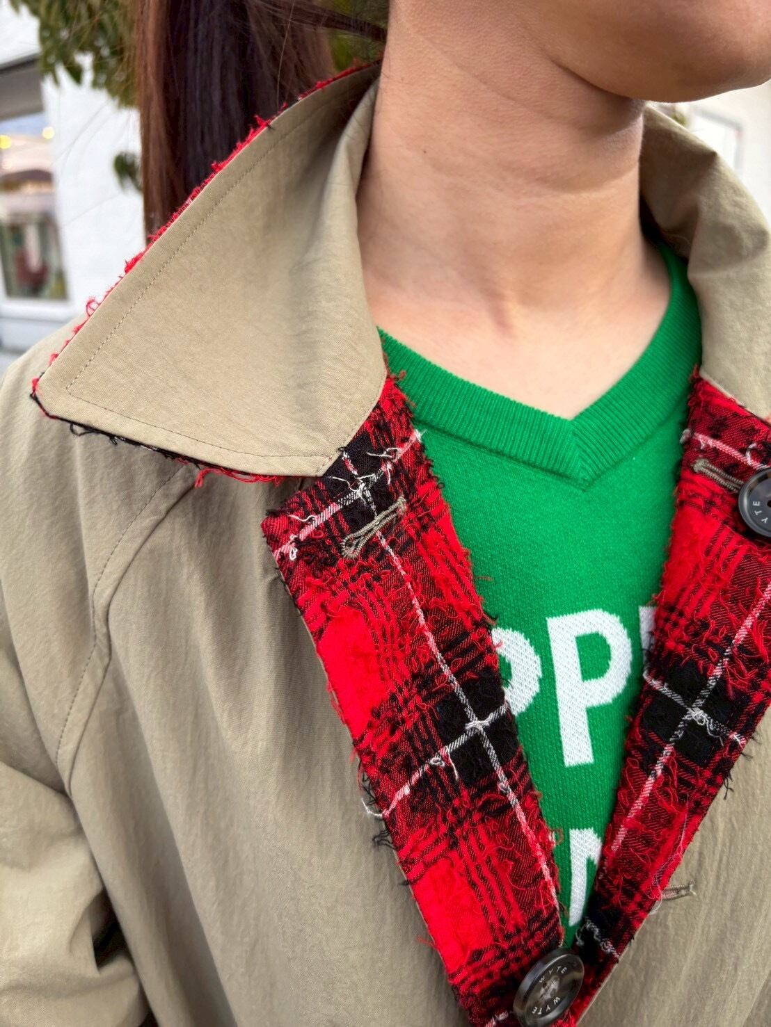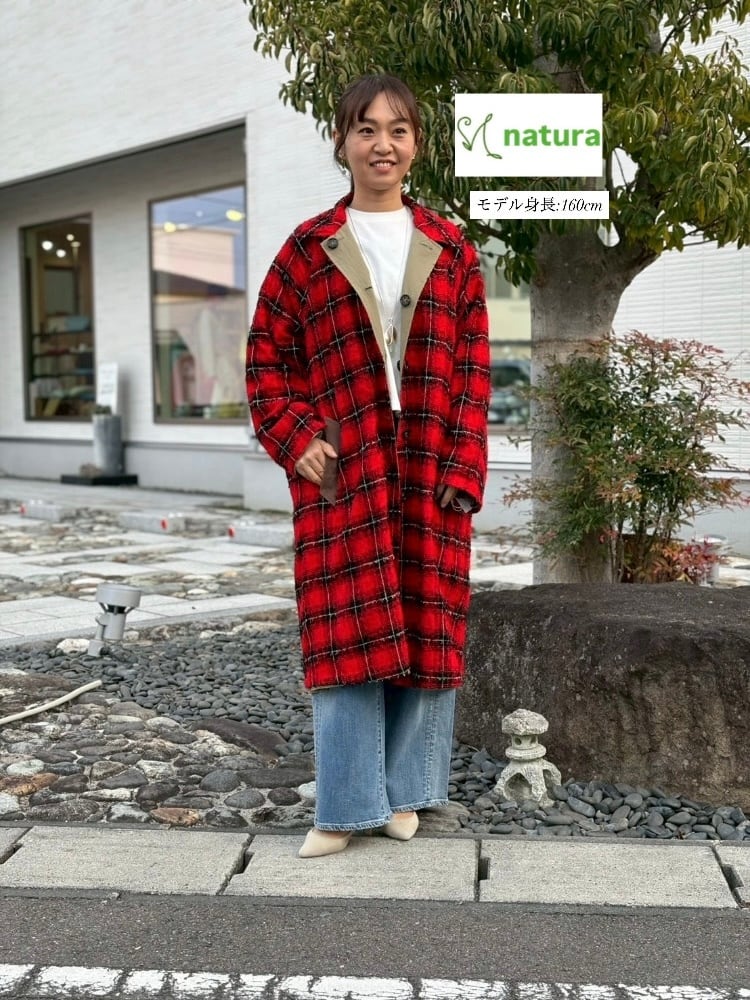 WYTE ワイト ループ ニードル パンチ リバーシブル コート カーキ レッド 赤 チェック