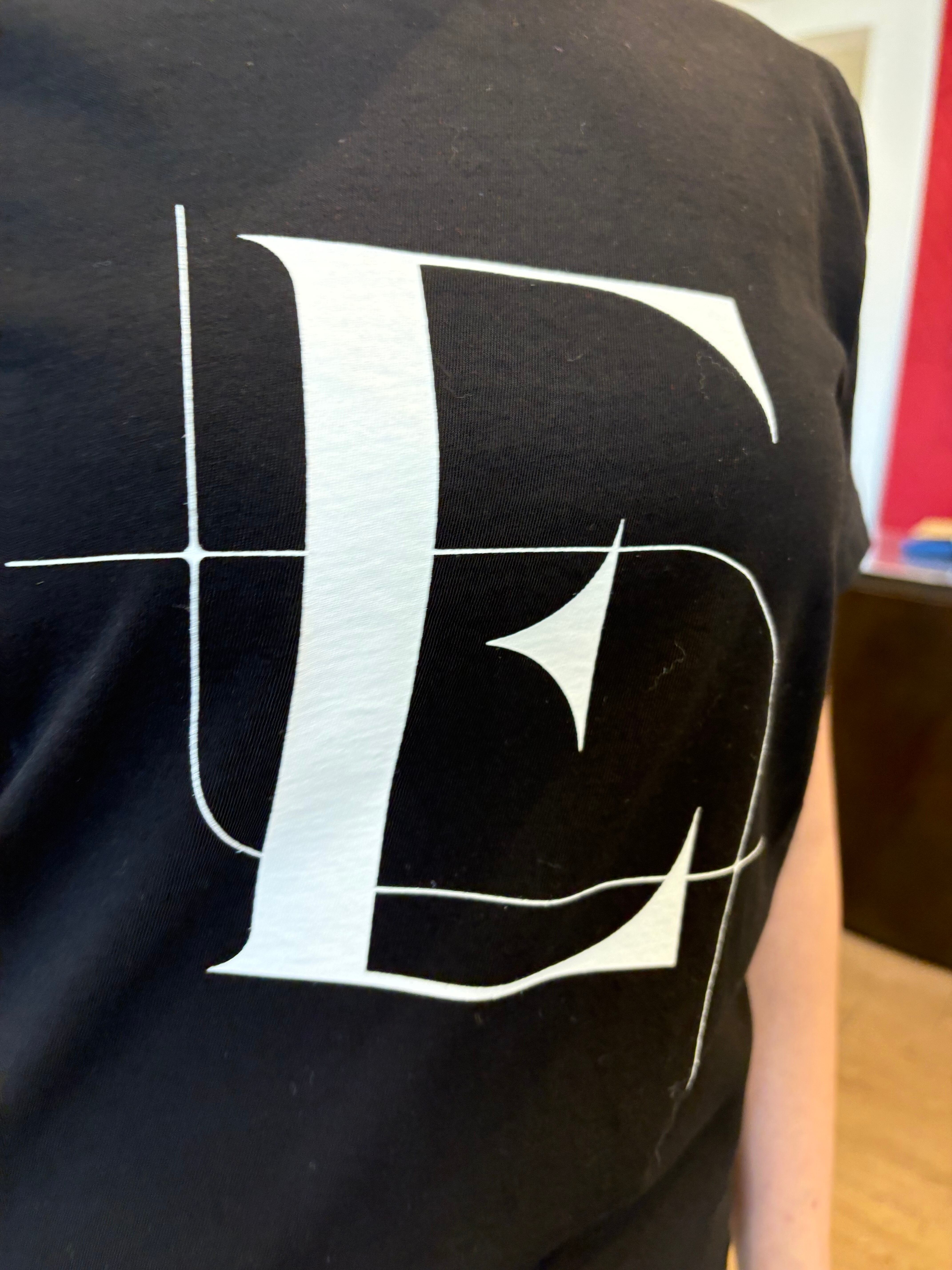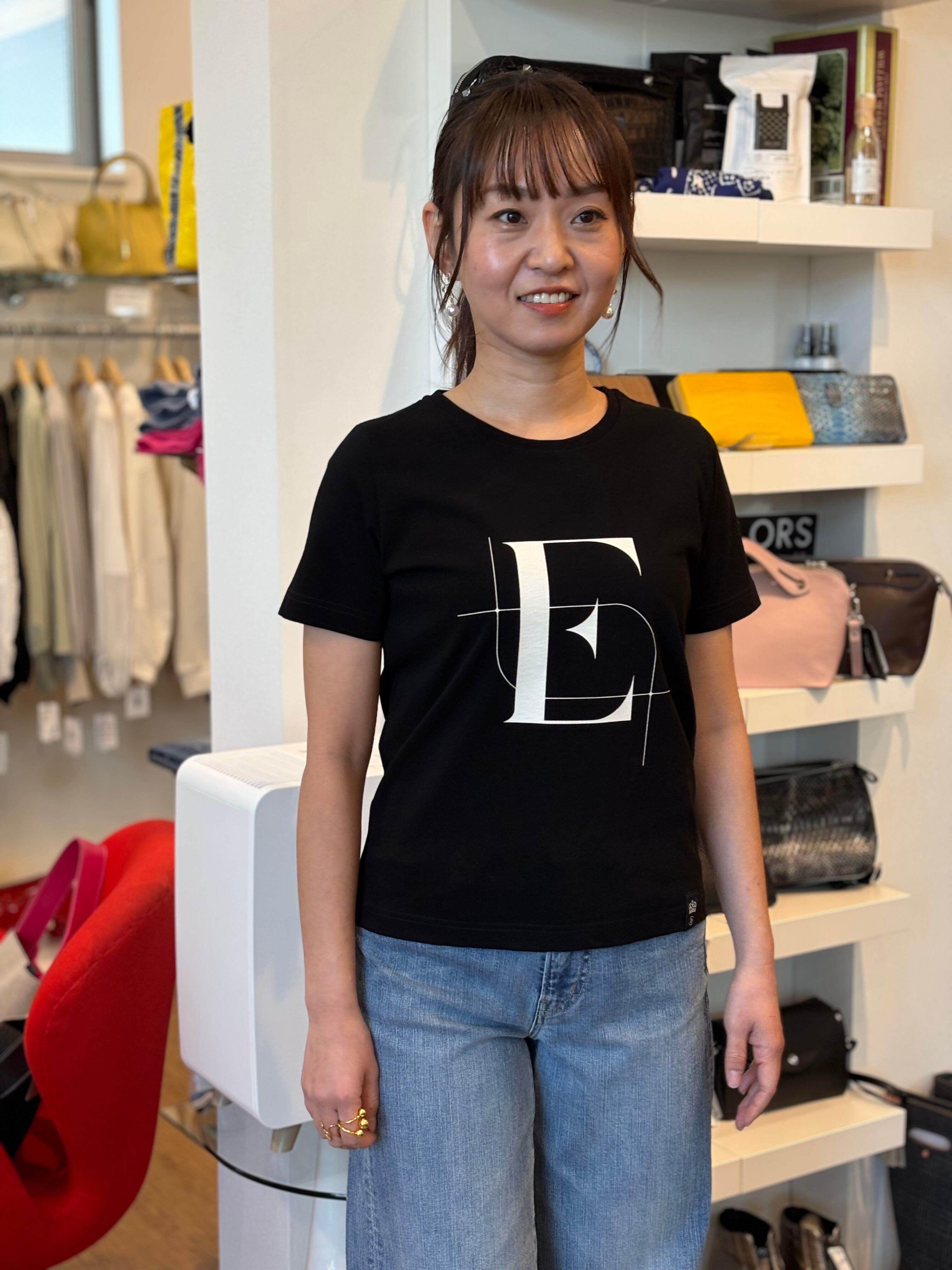 コンパクトなシルエットに、モダンなグラフィックを効かせたTシャツ。