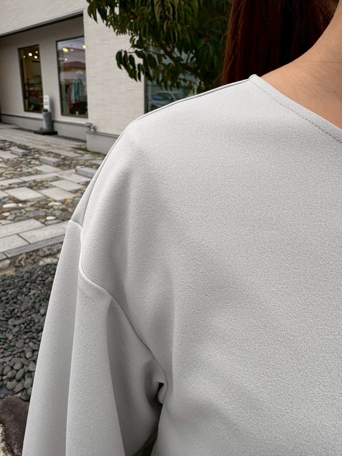 袖のシルエットが内側にカーブしたフォルム感のあるデザイントップスです。