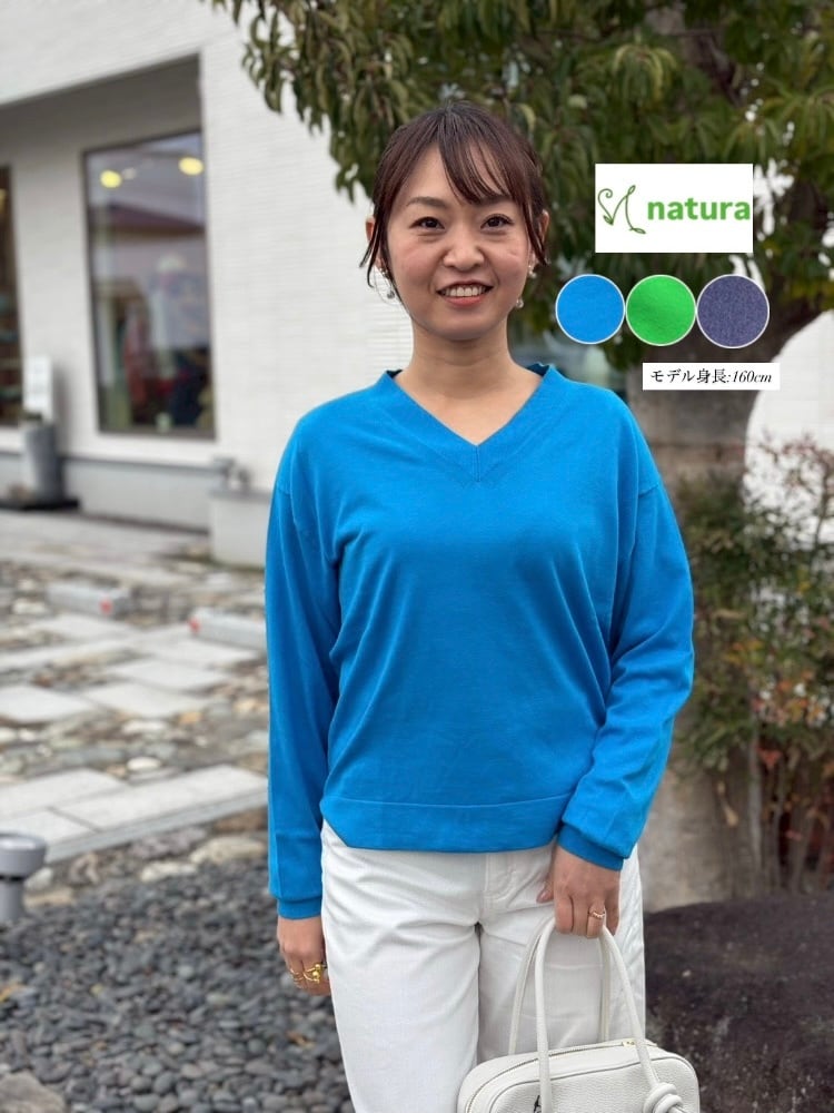 柔らかでしっとりした肌触りに癒される、スビン綿のVネックハイゲージニット。