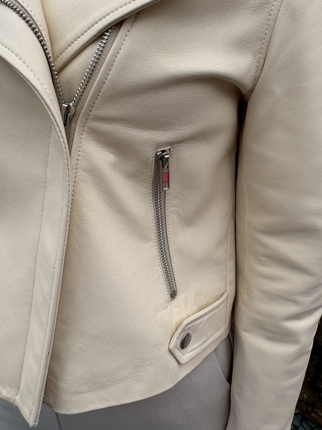 合わせるボトムでスイートにもクールにも印象を変えられるライダース。
