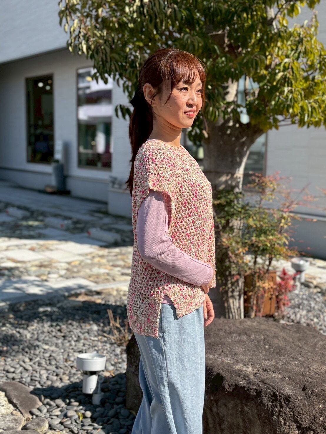 BRAHMIN ブラーミン カラー ネップ メッシュ ニット ベスト ピンク